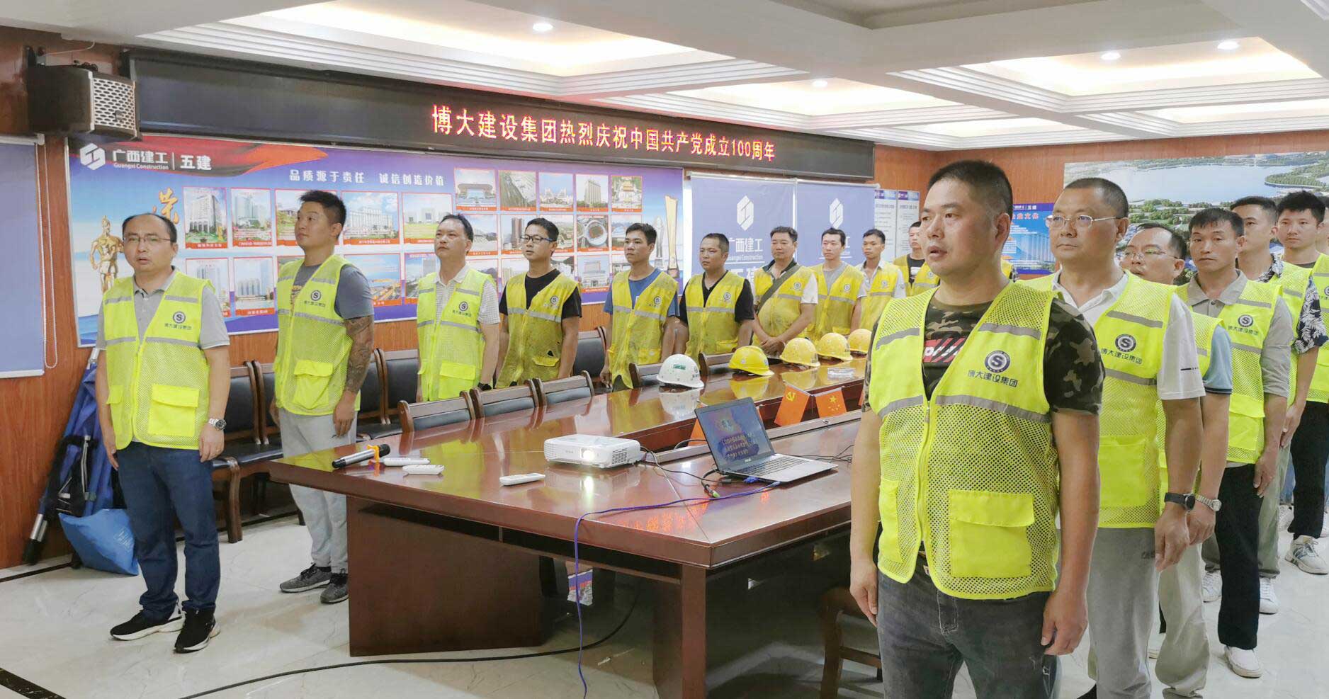 在這舉國歡慶的時刻,博大建設集團掀起了“仰望黨旗、向黨致敬”的活動熱潮。在集團董事會、黨支部的帶領下,總部辦公人員與廣布在全國各地的項目部隔空連線,高聲齊唱《沒有共產黨就沒有新中國》,向黨的百年華誕獻禮,表達博大人的崇高敬意和熾熱的愛黨、愛國情懷。